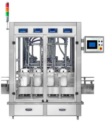 該機適用對流體半流體5-20kg的計重量灌裝,自動完成計數(shù)、計重量灌裝、一系列操作。特別適用于水劑、油漆.涂料.食用油、潤滑油的定量灌裝,是食品、醫(yī)藥、化妝品以及精細化工等行業(yè)的理想灌裝設(shè)備。